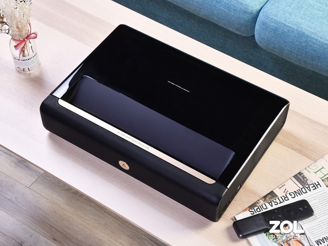 光峰A300 4K臻彩激光电视造型大气简约,机身更加扁平,看起来很有现代气息。机器以高贵的黑色为主色调,辅以金色线条,摆在客厅中非常有格调,可以瞬间彰显主人的品味。另外与同类产品相比,本机的体积更小,可以进一步节省室内空间。