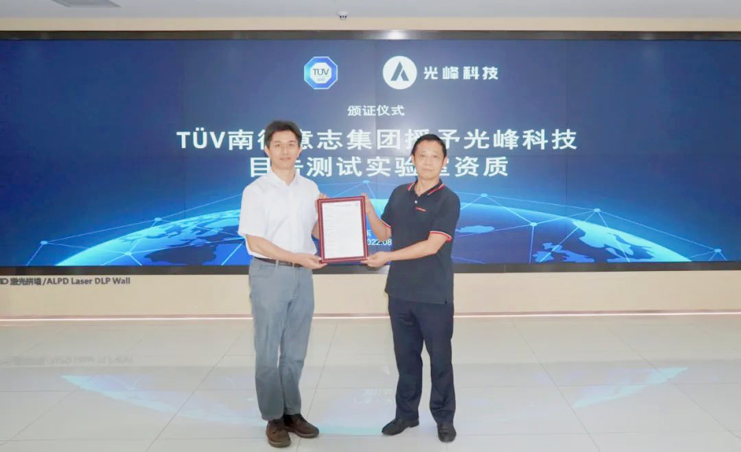 TÜV南德授予光峰科技目击测试实验室资质 2022-08-17