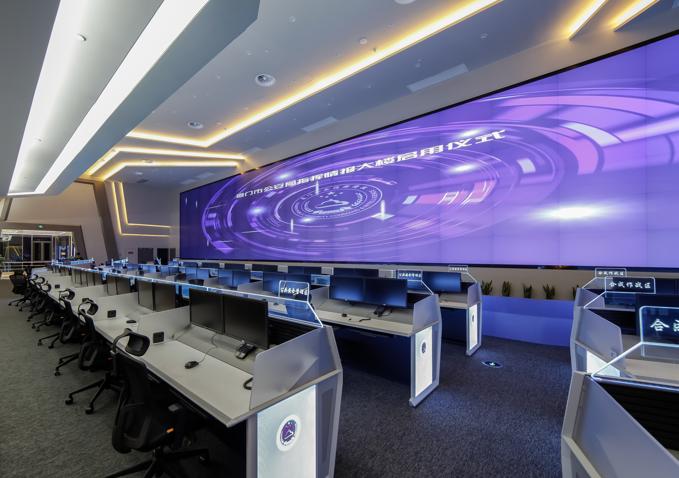 2016年年底,厦门市公安局全新的指挥情报大楼正式启用,标志着厦门市公安科技、指挥情报、110联动、城市公共安全管理等工作正式进入大数据时代!光峰光拼墙进驻厦门市公安局指挥情报中心,实现信息可视化的高效共享,加快公安行业的信息化建设步伐,进一步提高预测预警预防安全风险的能力。