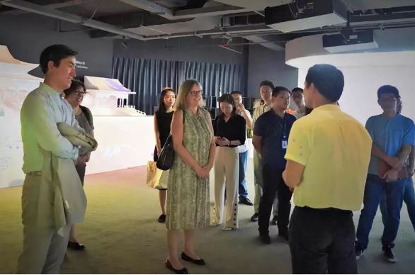 展厅3D mapping 区吸引了Donna的关注,该区域中的“点亮故宫”方案是以400:1的比例还原了2019年光峰点亮故宫“上元之夜”项目。Donna好奇到,需要多少台投影机才能实现如此震撼效果?光峰科技CTO胡飞博士向她展示了当时自己亲身参与该项目时用手机拍摄的画面,并介绍到打在故宫太和门上近 3000 平方米的投影面积,是由20台基于ALPD®激光显示技术的激光电影放映设备C60、激光工程机FU-13K这个“超强组合”打造,搭配成一套“完美颜色表现力”的投影方案。“Awesome!”Donna脱口而出。