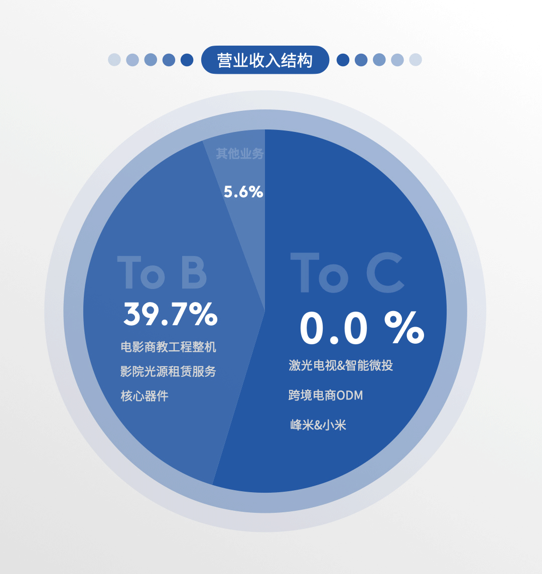 与此同时,光峰科技依托子公司峰米科技,发力激光电视、智能微投等TO C产品。2020年,公司家用业务实现收入10.65亿,同比增长60.88%;占总营收比重为54.65%,较上一年提升21.20个百分点,C端业务营收占比首次突破50%。