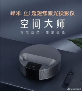 2021年8月25日,峰米科技发布首发价5899元的超短焦激光投影仪R1,具备超短投射比,即便是贴近墙面摆放,也能够投射出50~200吋的可变画面,打破了观影空间的限制。