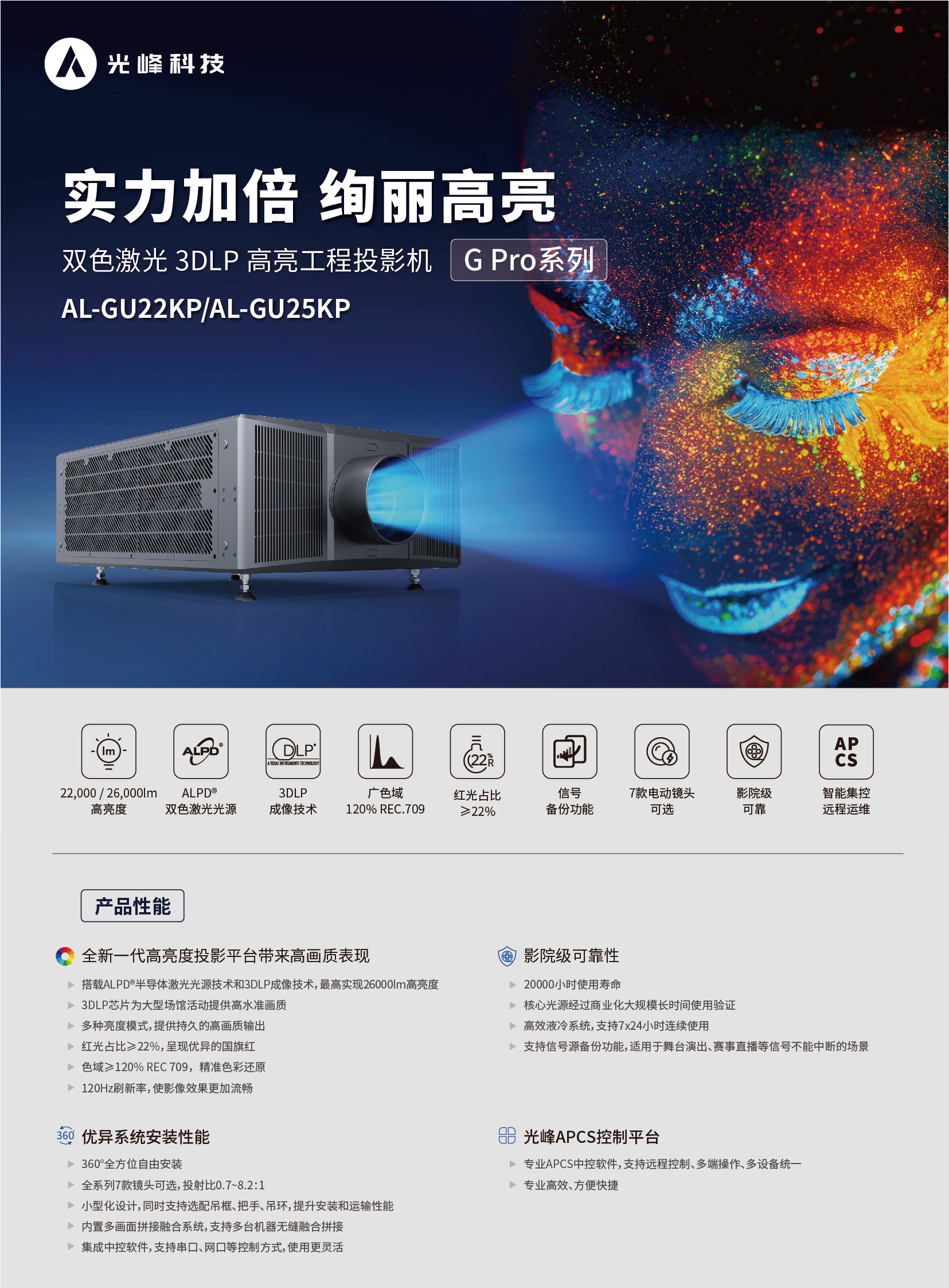 实力加倍 绚丽高亮G Pro系列,双色激光 3DLP 高亮工程投影机。