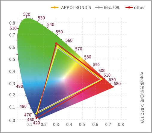 基色色差出厂控制在±0.01,差异性比LED投影机小数倍。