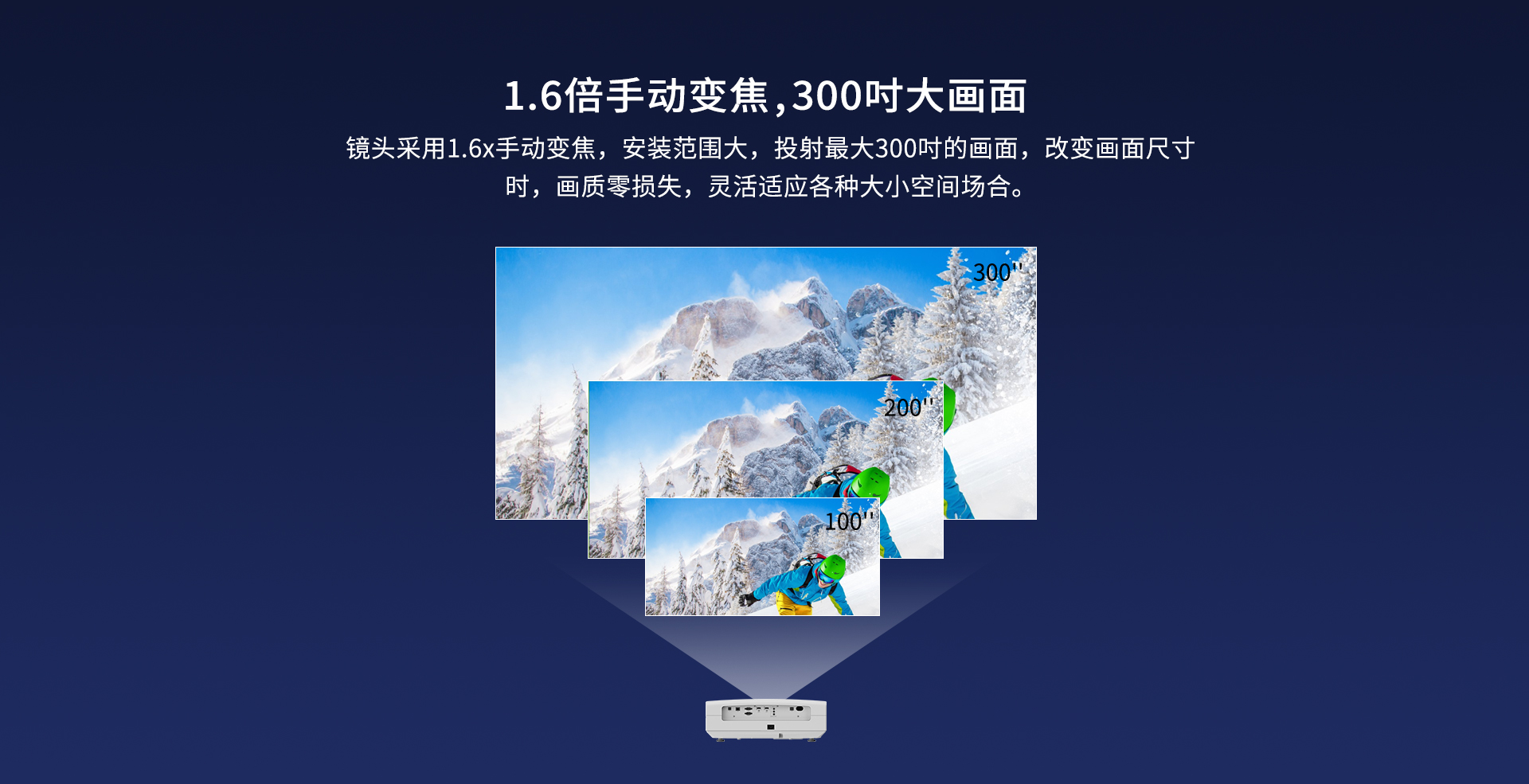 1.09~1.74投射比;1.6X大变焦;